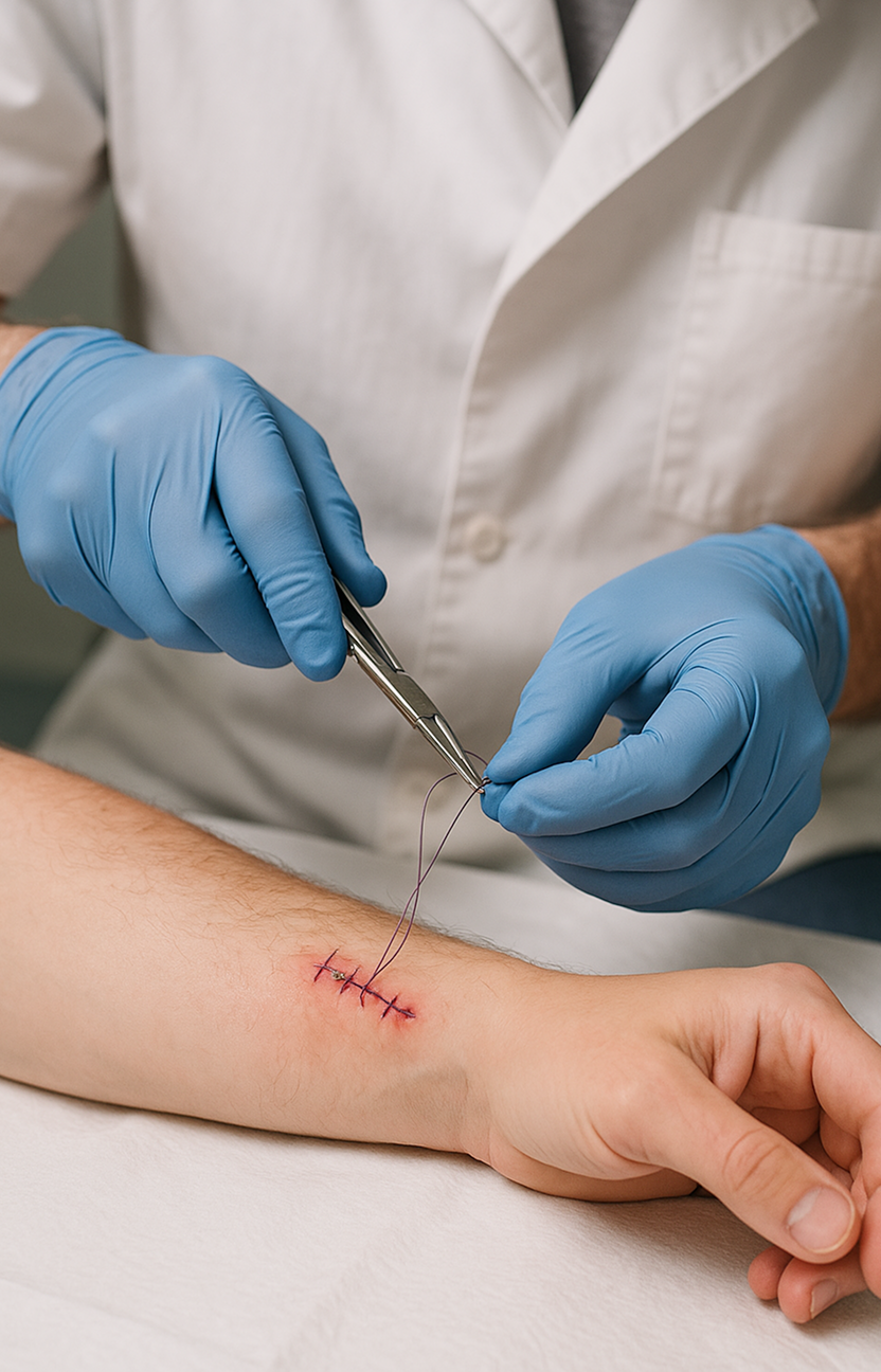 Certain wounds are not appropriate for in-home repair and may require emergency care or specialist referral. These include lacerations involving significant bleeding, nerve or tendon injury, animal bites, heavily contaminated wounds, facial injuries near the eyes, lips, lacerations involving ear cartilage, and wounds older than 12 hours. If you're unsure, please contact us before booking.