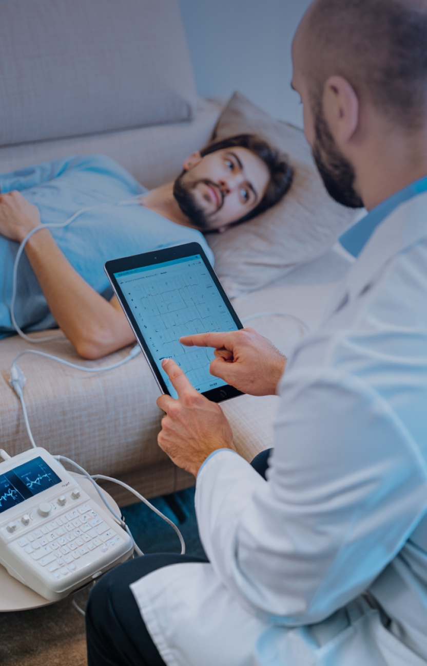 This EKG is conducted using FDA-cleared technology suitable for in-home use.While highly accurate for many common abnormalities, it does not replace hospital-grade diagnostics in acute or high-risk scenarios. Interpretation is provided during your visit. Certain results may prompt additional diagnostic testing, specialist referral, or referral to the Emergency Department for further care.